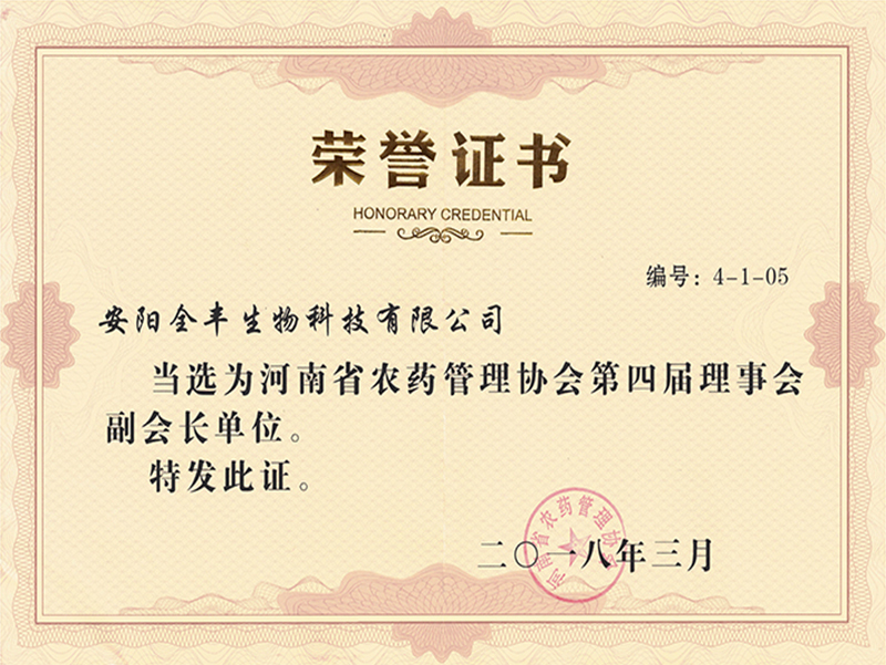 榮獲2018年度“河南省農(nóng)藥管理協(xié)會第四屆理事會副會長單位”