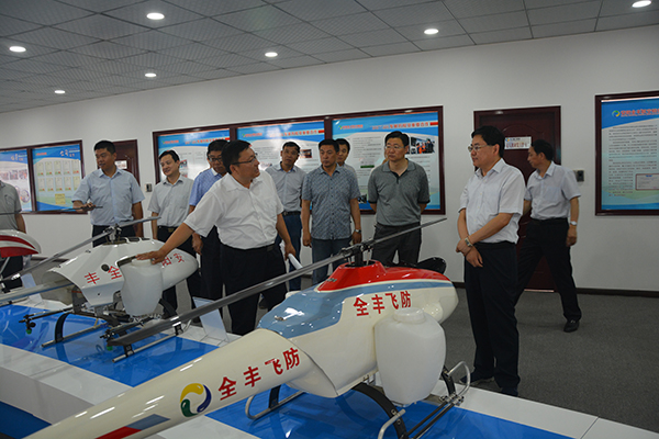 副市長陳志偉一行到公司年產(chǎn)3000架植保無人機(jī)生產(chǎn)基地現(xiàn)場,了解工程進(jìn)展情況,并參觀了全豐航空植保產(chǎn)品展廳及無人機(jī)裝配車間,深入了解產(chǎn)品的技術(shù)裝備、生產(chǎn)規(guī)模、市場銷售及服務(wù)等一系列情況,公司董事長王志國做了詳細(xì)說明和講解,并介紹了全豐航空植保發(fā)展歷程、無人機(jī)產(chǎn)品類型及服務(wù)模式。