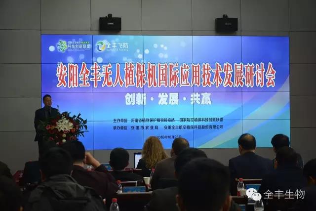為了促進(jìn)中國(guó)無(wú)人植保機(jī)與世界接軌,推動(dòng)航空植保行業(yè)邁上更高的臺(tái)階,2016年10月25日,安陽(yáng)全豐無(wú)人植保機(jī)國(guó)際應(yīng)用技術(shù)發(fā)展研討會(huì)在全豐多功能會(huì)議廳成功舉行。