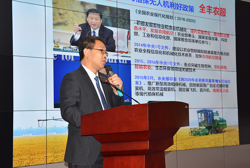 安陽全豐航空植保總經(jīng)理周國強(qiáng),做了《淺談我國植保無人機(jī)的現(xiàn)狀與應(yīng)用》主題匯報(bào),系統(tǒng)介紹了我國航空植保產(chǎn)業(yè)的發(fā)展現(xiàn)狀、植保無人機(jī)的應(yīng)用情況、以及對我國航空植保行業(yè)發(fā)展前景的展望。