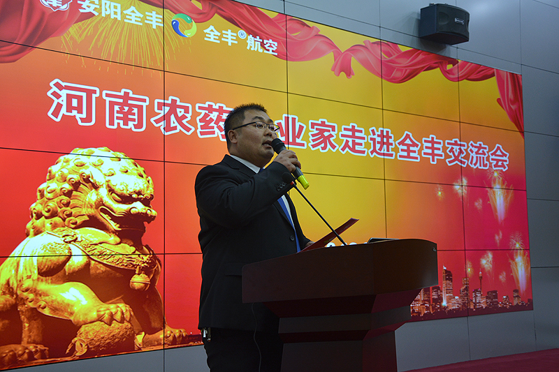 交流會(huì)由安陽全豐經(jīng)營副總張曉林主持。會(huì)議開場由安陽市農(nóng)業(yè)局副局長朱麗英女士致辭,歡迎來自河南省農(nóng)藥行業(yè)的企業(yè)家們來到古都安陽,并先后介紹了安陽市農(nóng)業(yè)發(fā)展?fàn)顩r,以及全豐生物科技大力發(fā)展航空植保統(tǒng)防統(tǒng)治取得的顯著成效。